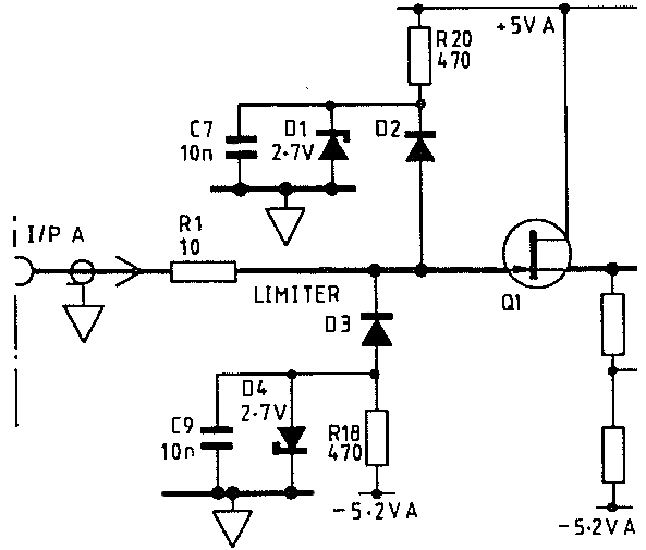Bij de veel gebruikte simpele opzet met dioden naar +Ub en massa wordt bij een overload de voedingsspanning omhoog gedrukt. Die energie moet wel ergens blijven. Vloeit die niet snel genoeg weg, dan wordt de voedingsspanning te ver omhoog gedrukt, en sneuvelt er mogelijk nog veel meer....Deze beveiliging kost wat meer onderdelen, maar is veel eleganter. Je kunt de treshold naar wens instellen. Alle energie van een overload gaat naar massa. R18 en R20 beschermen tevens de voedingsrails. Voor de reactiesnelheid helpt het dat door de zeners altijd al wat stroom loopt.
